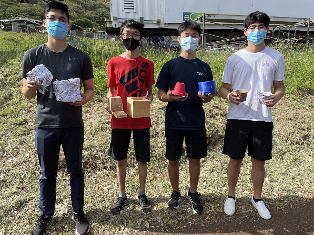 In the STEMworks Solutions October 2020 Pots That Rot Challenge, students were asked to create a biodegradable pot using the engineering design process. These pots needed to be able to replace the plastic pots employed by the Maui Nui Botanical Garden nursery. The Kupu Hawaii Youth Sustainability Challenge allows selected participants to receive funding, mentoring, and training for their projects. These projects were either student identified community sustainability challenges or community partnership challenges.