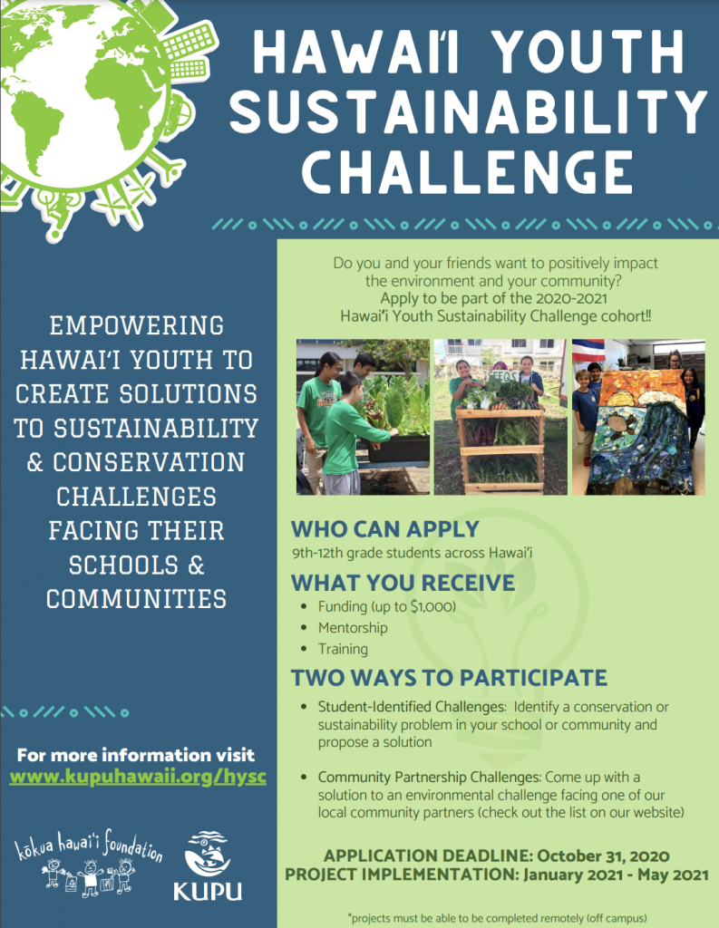 You can learn more at the STEMworks Solutions Challenges and the Hawaii Youth Sustainability Challenge - KUPU.